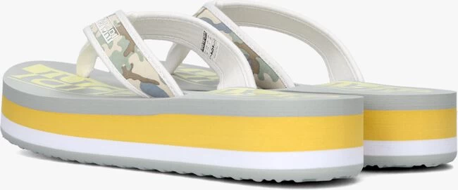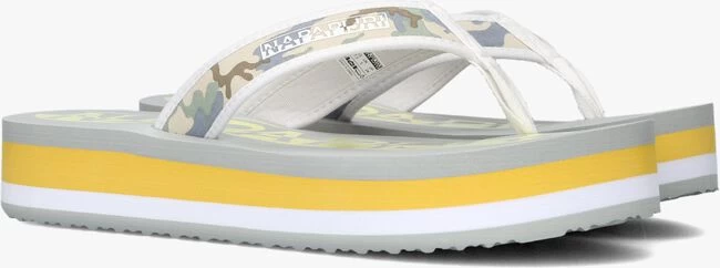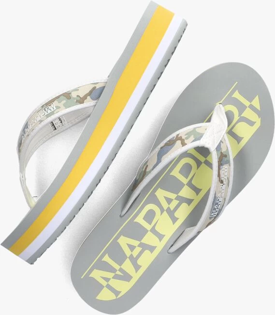 Deze grijze teenslipper STICK komt uit de collectie van het merk NAPAPIJRI. Dit model heeft een textiele band met een stoere camouflage print, een zacht teenstuk en een witte merkopdruk. Dit model is gemaakt van lichtgewicht rubber met een plateauzool die vrolijk is afgewerkt met een grijze, gele en witte accentstreep en het voetbed is gesierd met een oversized gele merkopdruk. Het profiel in de loopzool zorgt voor een uitstekende grip bij iedere stap. Draag ze lekker comfi naar het zwembad, thuis of naar het strand met dit model ben je klaar voor warme zomerse dagen.