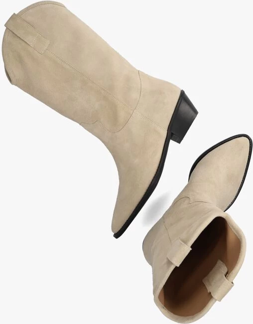 Deze half lange laars 01 190 met cowboy-accenten komt uit de collectie van het mooie merk NOTRE-V. De elegante Italiaanse ontwerpen van het merk NOTRE-V zijn er voor de verfijnde vrouw die er graag effortless chic uit wil zien. De producten zijn gemaakt van luxe materialen met subtiele accenten en een knipoog naar de laatste trends. Dit model met slanke vormgeving is gemaakt van beige suède en heeft city western details zoals een puntige neus, het dubbele stikwerk bij de enkel en de afgeronde schacht met aantreklussen. De voering is gemaakt van leer en het dempende voetbed is niet uitneembaar. De gelaagde hak heeft een hoogte van 5 centimeter en de schachthoogte is 29 centimeter. De rubberen loopzool met lijntjesprofiel zorgt voor voldoende grip, steun en stabiliteit! Combineer ‘m onder een zwierige jurk en steel de show!