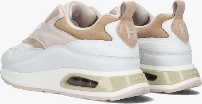 Het merk THE HOFF BRAND heeft hart voor Europa en het Middellands zeegebied en daar halen zij dan ook de inspiratie vandaan. Originele en zelfverzekerde vertrouwde modellen en producten, verbondenheid met de natuur en de oceaan en gericht op vreugdevolle mensen die qualitytime met familie en vrienden belangrijk vinden. De ontwerpen worden met veel zorg en aandacht gemaakt, een tikkeltje eigenwijs maar net niet rebels. Deze lage sneaker EVOLUTION is gemaakt van diverse materialen en kleuren. Zo is de neus en tong uitgevoerd in wit technisch textiel, is de zijkanten van de schoen uitgevoerd in beige kleurig leer met panelen van camelkleurig suède look. Leuke details zijn de merkopdrukken op de tong, hiel, en zoolrand, het aantreklusje achterop en het zichtbare luchtkussen in de zoolrand. Het binnenwerk heeft een neopreen voering met een gevoerde enkelkraag en tong en een comfortabel uitneembaar voetbed met memoryfoam voor onwijs veel comfort. De loopzool is gesierd met een transparante inzet met een unieke afdruk.