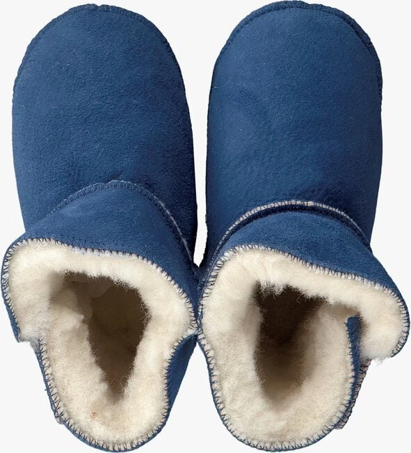 Dit is de TEDDY! Hét slofje voor die lieve kleine voetjes van je baby, want die wil je lekker warm houden. En dat gaat zeker lukken met deze mooie sloffen. De buitenkant is gemaakt van blauw suède en de voering is van heerlijk zacht maar vooral warm schaapswol. Dankzij de sterke klittenbandsluiting trek je ze gemakkelijk aan en schopt je kindje ze niet gemakkelijk uit. Deze slofjes zijn ook leuk om cadeau te geven. Maatadvies: dit slofje heeft een iets smallere instap en is dus iets minder geschikt voor een hoge wreef.