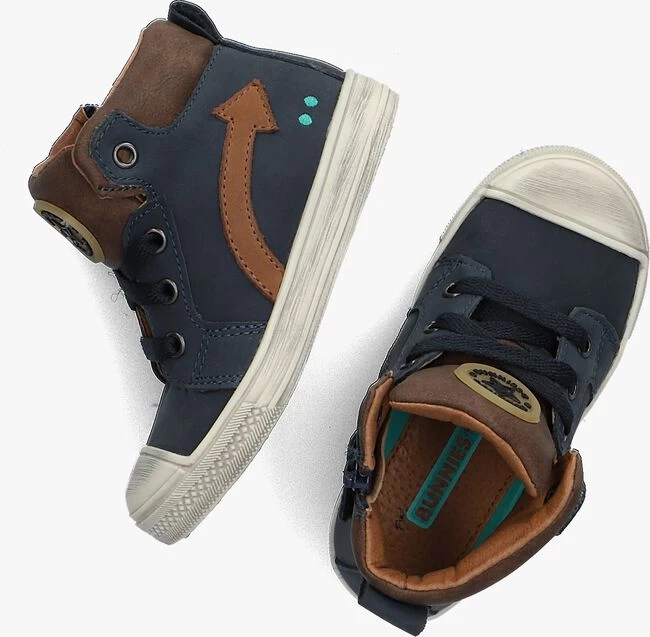 Deze blauwe hoge sneaker FRITS FERM komt uit de Stap collectie van het merk BUNNIES JR. Dit bijzonder flexibele schoentje heeft een nubuck bovenwerk met een tong en enkelkraag van technisch mesh. De donkerblauwe pijl en de herkenbare stipjes in het mintgroen op de zijkant zorgen samen met het licht gele rubberen merklabel op de tong voor een stoere en speelse look. Dankzij de rubberen neus is het nubuck extra goed beschermd tegen beschadigingen en met behulp van de rits en de aantreklus trek je deze schoen eenvoudig aan bij je kleintje. Het binnenwerk is van leer en met het uitneembare voetbed kun je goed zien of je kindje de juiste maat draagt. De zool is gemaakt van rubber en heeft een stootrand op de neus en een gripvast ruitjesprofiel.