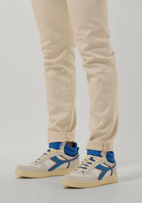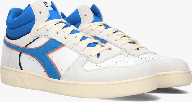 Het Italiaanse merk DIADORA produceert al decennialang kwalitatieve sportschoenen en focust zich sinds de laatste 10 jaar ook op de fashionmarkt. De modellen hebben een vernieuwde look met behoud van het uitstekende comfort en de perfecte pasvormen. Deze witte hoge sneaker MAGIC BASKET DEMI CUT met blauwe en oranje kleuraccenten is geïnspireerd op tennisschoenen uit de jaren ’70 en is uitgevoerd in soepel gladleer met een beschermende waxlaag. Het neopreen binnenwerk zorgt voor een ademende en vocht opnemende werking en hij heeft een vast voetbed met een gewatteerde enkelkraag die samen voor veel comfort en demping zorgen. Op de zijkant is het herkenbare logo in het blauw met oranje biesjes te vinden en de tong is voorzien van een textiel merklabel. De zoolrand met fijne structuur is voorzien van een reliëf merkopdruk. Het geribbelde profiel zorgt voor onmiskenbare grip op de straten van de stad. Wij vinden het de meest comfortabele retro sneaker voor een up-to-date look!