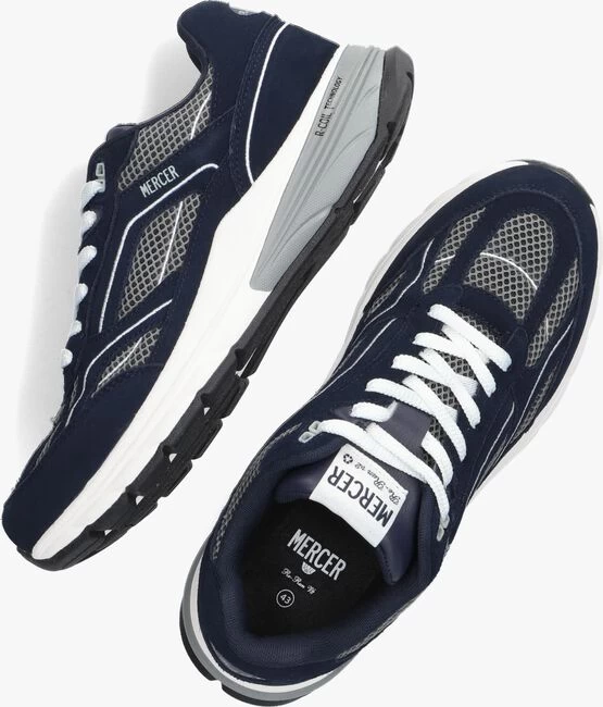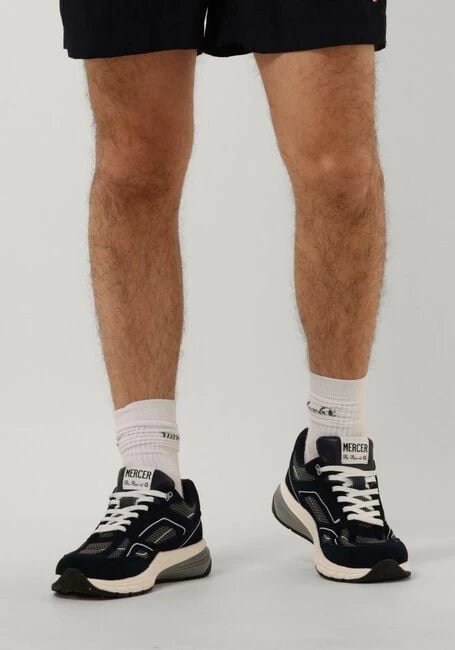 De nieuwste trend van dit seizoen, de running sneaker en deze wil je echt niet missen! Deze sneakers hebben een comfortabel en sportief uiterlijk en lopen ook nog eens heerlijk. Deze donkerblauwe sneakers THE RE-RUN V2 MEN van het high end sneaker label Mercer Amsterdam worden zoals de naam al zegt, ontworpen in Amsterdam. Het merk creëert nieuwe eigentijdse stijlen die op ambachtelijke wijze vervaardigd worden in Portugal en Italië voor een exclusieve look-and-feel. Deze sportieve runner sneaker is uitgevoerd in grijs mesh met donkerblauw suède en witte accenten. Opvallend zijn de witte veters, het witte merklabel op de leatherlook tong, het grijze merkreliëf op de zijkant en de grove zool. Het binnenwerk is gemaakt van gevoerd mesh textiel met een uitneembaar OrthoLite® voetbed. Deze lichtgewicht sneaker is voorzien van een witte, rubberen zool met een grije inzet en een zwarte loopzool met een opgedeeld vlakkenprofiel voor een goede grip, demping en afwikkeling van de voet. Ga mee met de laatste sneaker trend en combineer hem eindeloos onder allerlei toffe outfits voor een fantastische look.