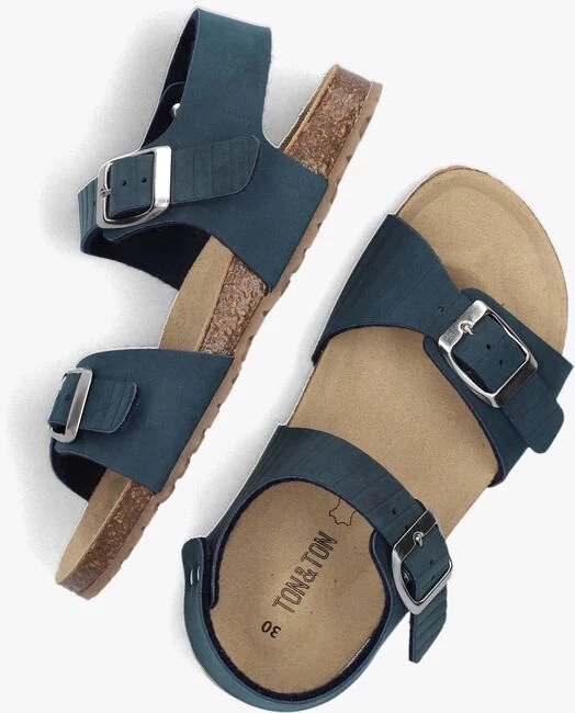 Met dit fijne LUKA sandaaltje van het merk TON & TON stijl jij de zomerse outfits van je kids helemaal af. De buitenkant is gemaakt van blauw nubucklook en het sandaaltje heeft twee bandjes die over de voorvoet en de wreef lopen die je gemakkelijk aan en uit kunt doen, door de zilverkleurige gespsluitingen. Voor een extra comfortabel gevoel bestaat het binnenwerk uit zacht leer en heeft de zool een licht voorgevormd voetbed. De kurken tussenzool zorgt voor een goede demping en de rubberen loopzool is gemaakt van anti-slib rubber met een gripvast profiel. Met deze hippe sandaaltjes is je zoontje klaar voor de zomer!