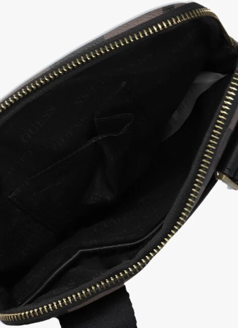 Deze handige en trendy schoudertas ESCAPE TOP ZIP CROSSBODY FLAT is van het bekende merk GUESS. Hij is uitgevoerd in bruin leatherlook met all over merkopdrukken. Een opvallend detail is het merkembleem op de voorkant. De tas is textiel gevoerd en binnenin vind je het hoofdcompartiment met daarin één vakje voor je telefoon en één steekvak. Ook heeft de tas zowel op de voor- als achterkant een steekvak dat sluit met een drukknoop. De schouderband zit vast aan de tas en is verstelbaar. Zo pas jij het hengsel eenvoudig aan naar jouw gewenste lengte! Afmetingen: 20 x 2 x 23 centimeter (lengte x breedte x hoogte)Â