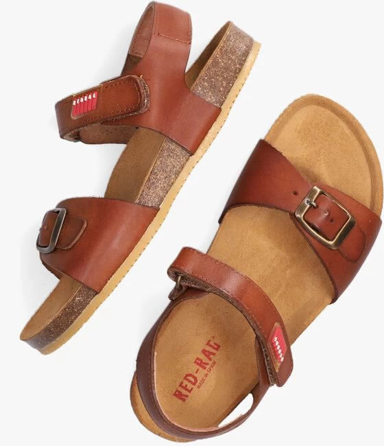Met deze fijne basic sandaal 19155 van het merk RED-RAG stijl jij je zomerse outfits af. De buitenkant is gemaakt van cognackleurig leer en heeft een gespje aan de voorvoet en een klittenbandsluiting over de wreef. Aan de hiel is een fijn kussentje bevestigd voor een comfortabel gevoel en het bandje over de wreef is voorzien van een rubberen merkpatch. Het binnenwerk heeft een leren voering met een suède toplaag over het licht voorgevormd voetbed. De kurken tussenzool zorgt voor een goede demping en de rubberen loopzool heeft een gripvast profiel.