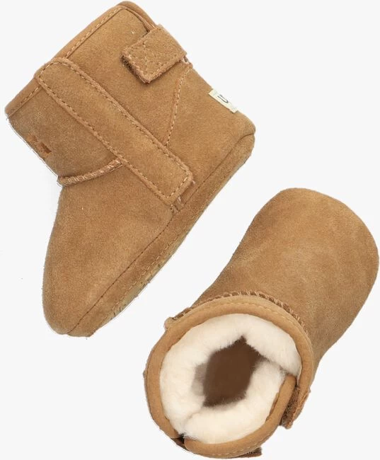 Deze babyschoentjes, JESSE BOW II, komen uit de kinderschoenencollectie van UGG Australia. Trek er lekker op uit want met deze schoentjes zal jouw kindje zeker geen koude voetjes hebben. Dit exemplaar is helemaal gevoerd met wol, heeft een bovenwerk van cognackleurig suède en een fijn stiksel over de wreef. Door de dubbele klittenbandsluiting aan de hiel en zijkant van het schoentje trek je ze nóg gemakkelijker aan en uit en sluit het model netjes aan. Het rubberen zooltje biedt veel comfort en grip voor de kindjes die hun eerste voorzichtige stapjes zetten. Niet alleen heel erg leuk om te krijgen, ook leuk om te geven.   Â