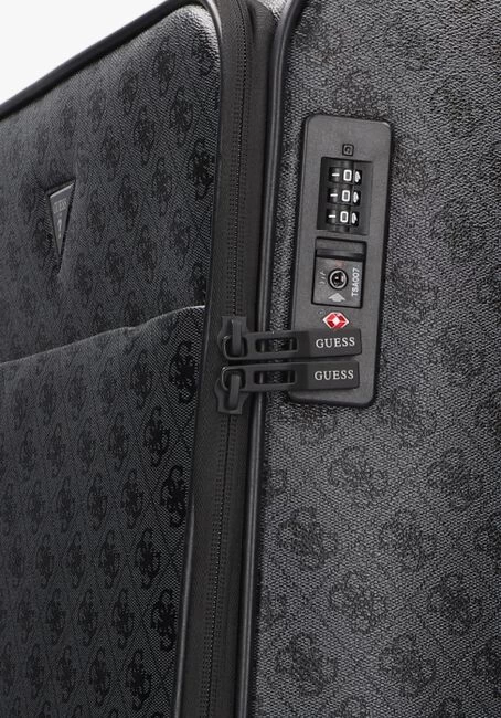 Ga op reis en neem al jouw spullen in deze koffer VEZZOLA CABIN TROLLEY mee! Deze donkergrijze koffer met zwarte accenten komt uit de collectie van het merk GUESS en heeft all-over merkemblemen op het bovenwerk, gemaakt van lederlook. De koffer heeft één hoofdvak en één verstopt ritsvak aan de voorzijde. De binnenkant is gemaakt van textiel en heeft handige vakken, zodat jij je spullen goed kunt organizen! De koffer is goed beveiligd dankzij het cijferslot aan de zijkant, deze code kan je zelf instellen. Ook is de koffer erg stevig en blijft hij lang netjes door de kunststof stootranden. Leuke details: het leatherlook handvat aan de bovenzijde, de mat zwarte ritshangers en het welbekende driehoekige merkembleem op de voorzijde. De afmetingen zijn: 37 x 18 x 48 centimeter (lengte x breedte x hoogte)Â
