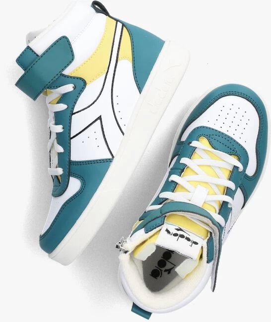 Deze hoge sneaker MAGIC BASKED MID PS van DIADORA is gemaakt van groen, geel en wit leatherlook. Leuke details zijn de perforaties op de neus en zijkant, de gele tong van nylon, het aantreklusje en het merkembleem op de zijkant, tong en zoolrand. De voering is gemaakt van badstof en het voetbed is niet uitneembaar. Je trekt ‘m gemakkelijk aan en uit dankzij de ritssluiting aan de binnenzijde en de elastische veters veren bij iedere instap goed mee! Je kunt de sneaker strakker maken met de klittenbandsluiting. De rubberen zool zorgt voor voldoende grip, steun en stabiliteit tijdens iedere activiteit!Â