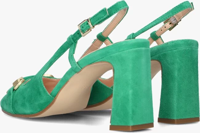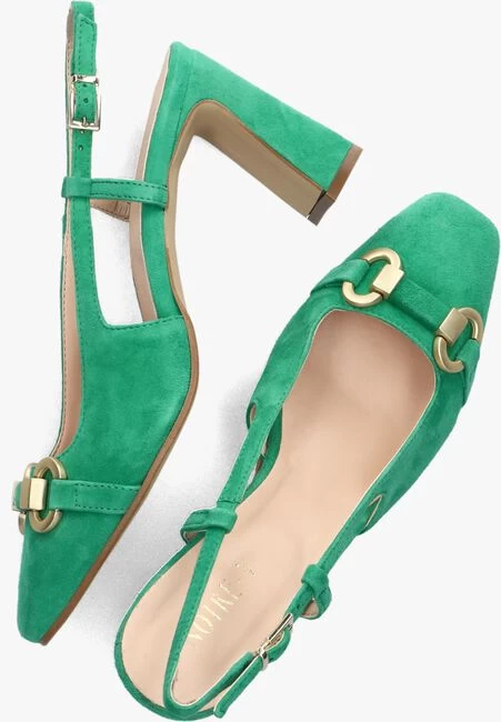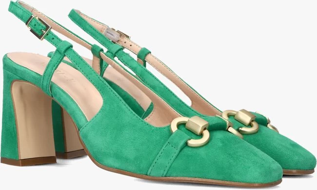 De elegante Italiaanse ontwerpen van het merk NOTRE-V zijn er voor de verfijnde vrouw die er graag effortless chic uit wil zien. Gemaakt van luxe materialen met subtiele accenten en een knipoog naar de laatste trends. Deze groene slingback 51294 heeft een vrouwelijke look door de slanke vormgeving, de halve blokhak en de carré neus. Dit model is uitgevoerd in hoogwaardig suède en heeft op de voorvoet een goudkleurig element. De leatherlook voering heeft een vast, leder voetbed met een dempende schuiminzet voor optimaal comfort. De hak is bekleed met hetzelfde materiaal en heeft een hakhoogte van 9 centimeter. Het perfect item om iedere look stijlvol mee af te maken!