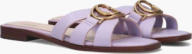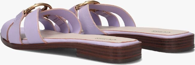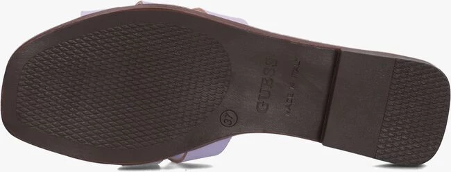 Voeg een zomerse uitstraling toe aan je outfit met deze paarse slipper SYMO uit de collectie van het merk GUESS! Deze chique slipper van leer heeft drie bandjes over de voorvoet met een mooi goudkleurig merkembleem. De voering is gemaakt van leer en het licht opgevulde voetbed zorgt voor een prettig loopcomfort. De rubberen zool met een houtlook hakje heeft een gripvast profiel en het hakje is 2 centimeter hoog. Draag deze sprankelende slipper onder jouw favoriete zomeroutfit en steel de show!