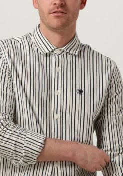 Lichtblauwe Cast Iron Casual Overhemd Long Sleeve Shirt Jersey Stripe With Structure
