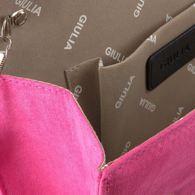 Het Spaanse merk GIULIA heeft voor iedere vrouw fantastische schoenen en tassen in de collectie, waarmee je je op en top vrouw voelt. Door het strakke, maar vrouwelijke ontwerp combineer je deze langwerpige clutch G.HANDBAG heel eenvoudig bij al jouw outfits en voorzie je jouw outfit van de perfecte finishing touch. Deze fuchsiaroze clutch is uitgevoerd in zacht suèdelook textiel en heeft een klep met dubbele magneetsluiting en merkembleem. In de tas zijn een taupekleurige textiel binnenvoering met merkopdrukken en een extra steekvakje te vinden. Draag ‘m in je hand of onder je arm voor die geweldige Je ne sais qoui-uitstraling, zoals die stijlvolle Franse dames dat ook heel nonchalant doen. Of bevestig de fijne schouderketting van zilverkleurige schakels en hang ‘m heel praktisch en elegant over je schouder, zodat jij je handen vrij hebt voor drankjes en dansjes! Afmetingen: 26 x 3 x 14 cm (lengte x breedte x hoogte)