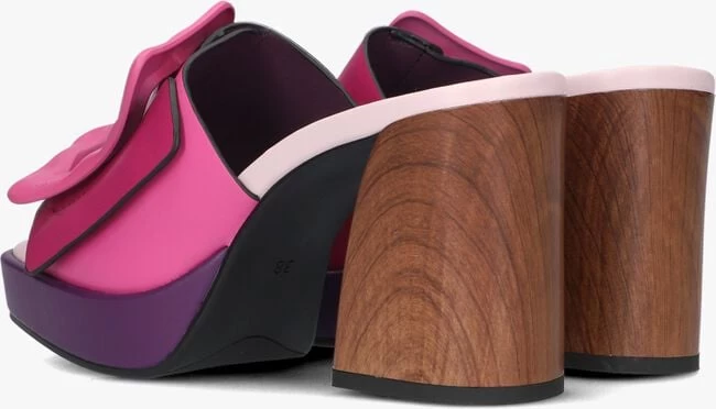 Bij het zien van deze stoere muiltjes 9238 van het merk NOA HARMON met carréneus en brede, roze wreefband krijg je meteen zin in de zomer! En of je ze nu onder een jeans of een jurk draagt, ze geven jouw outfit een mooie vrouwelijke finishing touch. Ze zijn gemaakt van leatherlook met een grote band van paars leatherlook met een roze siergesp op de wreefband. De houtlook blokhak van ruim 9 centimeter hoogte en het plateau onder de voorvoet van 2,5 centimeter hoog geeft die stoere touch. Het lederen voetbed heeft een dempende toplaag voor een comfortabel gevoel. Dankzij de bruine, rubberen loopzool met fijn reliëf ervaar je een goede grip tijdens jouw uitstapjes. Onder welke outfit ga jij ze dragen?Â
