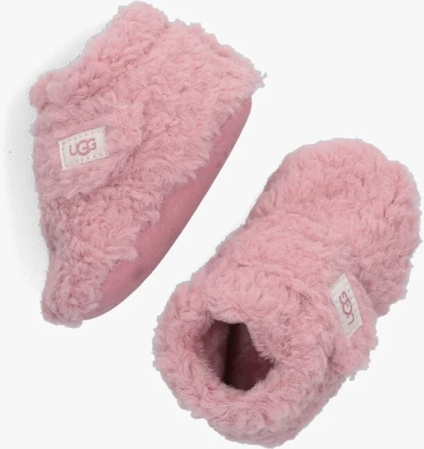 Van het merk Ugg Australia deze babyschoentjes in de kleur roze met klittenbandsluiting op de wreef. De slofjes zijn gemaakt van zachte teddy en hebben een opgevuld voetbed voor extra comfort. De suède zool is voorzien van een antislip laag. Ideaal voor je baby en leuk als cadeautje!Â