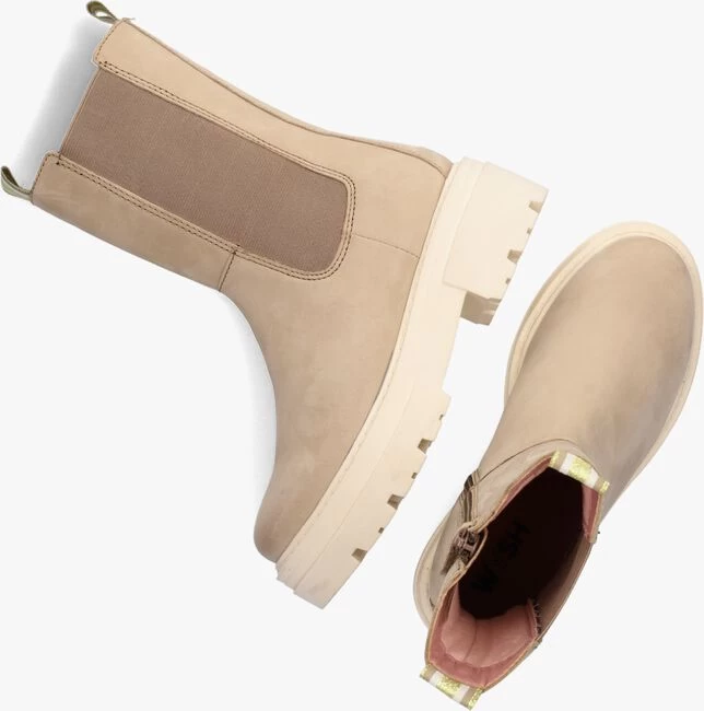 Hét nieuwe schoenenmerk voor coole kids, WYSH, staat voor Wear Your SHoes en is voor eigenwijze types die hun eigen stijl volgen. Oftewel, doe je ding! Draag op ieder moment de schoenen die jij wil, op iedere manier die jij tof vindt. Dit trendy model is met zorg ontworpen voor snel groeiende voeten. Deze taupekleurige chelsea boot SUZAN is uitgevoerd in hoogwaardig nubuck met toffe details, zoals de twee textiele aantreklussen op de schacht en een ritssluiting op de zijkant van de laars om ‘m gemakkelijk aan en uit te kunnen trekken. Het binnenwerk bestaat uit leer en zacht textiel met een lichte voering en in combinatie met het elastische zijpaneel zorgt dit voor veel comfort de gehele dag. De rubberen zool met stoere geblokte vormen geeft je een coole look en het gripvaste profiel zorgt ervoor dat jij bij iedere uitdaging een goede stabiliteit en grip ervaart. Durf eigenwijs te zijn met WYSH!