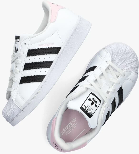 Met deze lage sneaker SUPERSTAR C laat ADIDAS ook de jongste kennismaken met hun originals! Dit item is gevoerd met textiel en de buitenkant is van wit leatherlook met roze accenten. Leuke details zijn de gekartelde, authentieke 3-stripes, de perforaties op de zijkant, de rubberen shell-toe, de lichtroze hielcap en de merkopdukken op de tong en hiel. Ook tof: de zoolrand is afgewerkt met een stiksel en uitgevoerd in een andere kleur voor een speelse touch. De opgevulde enkelkraag en tong zorgen voor extra comfort en door het gripvaste profiel van de loopzool ervaren kinderen voldoende stabiliteit bij iedere stap. Een mooie, comfortabele én trendy sneaker!