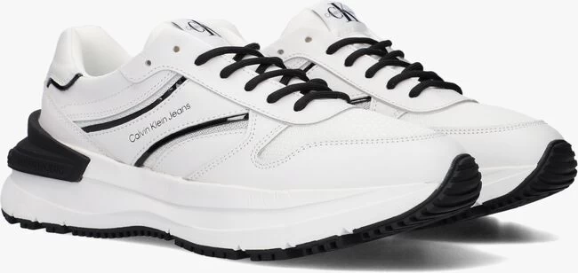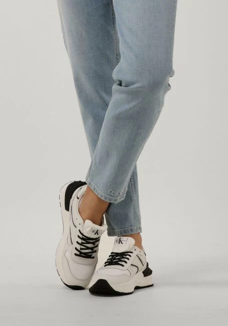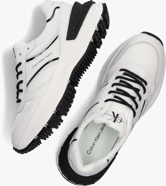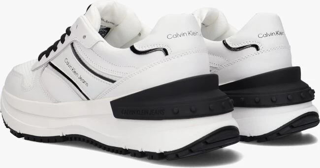 Deze stoere, lage sneaker CHUNKY RIBBON van Calvin Klein is gemaakt van wit leer in combinatie met een neus en tong van textiel en heeft zwarte accenten. Leuke details zijn de merkemblemen op de tong, zijkant en hielcap, de zwarte veter en de lak lijntjes. Extra opvallend is de zwarte hielstabilisator met bolletjes en merkreliëf. De sneaker is gevoerd met textiel en het voetbed is uitneembaar. De grove zool is gemaakt van rubber en is onder de voorvoet 3 centimeter hoog en loopt naar achteren op tot 6 centimeter hoogte. De zwarte loopzool heeft een gripvast profiel. Combineer ‘m onder een stoere jeans!