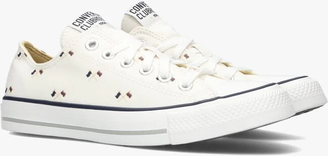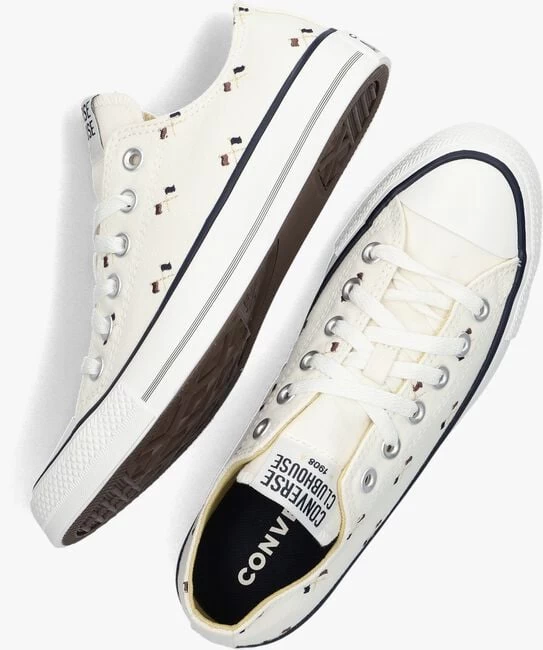Ga voor stijl met deze CHUCK TAYLOR ALL STAR HI 1 sneaker van het bekende schoenenmerk Converse All Star! Deze roomwitte, lage sneaker is perfect om jouw persoonlijke stijl mee te laten zien en is eindeloos te combineren bij al jouw zomerse outfits. Het bovenwerk van canvas heeft een unieke look door het vlaggetjes patroon over het gehele bovenwerk. De rubberen neus en stootrand geven deze schoen de kenmerkende Converse-look. Extra leuk is de streep op de zoolrand. De schoen is uitgevoerd met canvas voering, een vast voetbed en een rubberen zool met profiel.