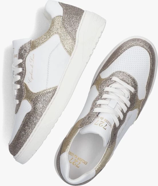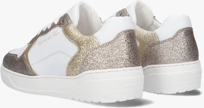 Van het Belgische merk CYCLEUR de LUXE is deze lage fashionsneaker CORNCOB. Het bovenwerk is gemaakt van wit gladleer en heeft goudkleurige en bruine glitter panelen voor een shiny look, terwijl de perforaties op de voorvoet, de schoen voorziet van een stoere touch. Het binnenwerk is van leatherlook en het voetbed is uitneembaar. Op de tong en zijkant bevindt zich een goudkleurig merkembleem. De rubberen zool is erg flexibel, licht van gewicht en het grafische profiel in de loopzool biedt een goede grip. Combineer ‘m onder een leuke pantalon of skinny jeans!Â