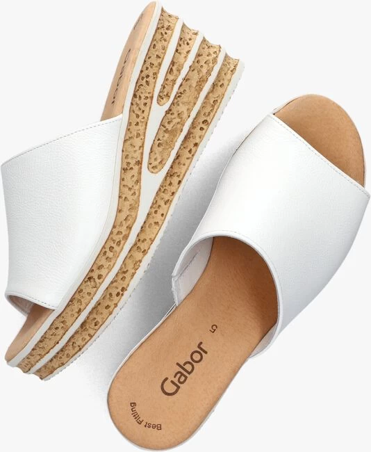 Ben je op zoek naar een supercomfortabele slipper met een trendy look? Dan zit je met dit model 650.1 uit de collectie van het merk Gabor helemaal goed. Dit witte model heeft een brede leren band met een elastische inzet aan de binnenkant van de voet voor een flexibel loopcomfort. De band en het voetbed zijn gemaakt van leer en daarnaast zorgt de rubberfoam schuimlaag in het voetbed voor een uitstekende demping. De kurken plateauzool geeft een speels accent en zorgt voor extra lengte. Dankzij het profiel in de rubberen loopzool heb je een goede grip en een goede flexibele afwikkeling van de voet. De zool is 3 centimeter dik onder de voorvoet en de hakhoogte is 7 centimeter. Of je ‘m nu draagt onder een broek of jurk, jij kunt er de hele dag op door!