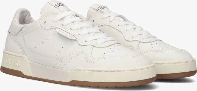Deze roomwitte sneaker JINNY van het merk GUESS is stoer en vrouwelijk tegelijk! Dit model is uitgevoerd in leer met diverse overlays en perforaties op de neus en zijkanten. Toffe details zijn de witte veters, het merklabel op de tong en het goudkleurige merkembleem aan de zijkant van de veterklep. De voering is gemaakt van leatherlook in combinatie met badstof en je ervaart extra comfort dankzij de gewatteerde enkelkraag. De rubberen zool met merkreliëf heeft een bruine loopzool met gripvast profiel en zorgt er voor dat jij al je dagelijkse activiteiten op dit leuke model kunt doen!Â