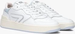 De SMASH sneaker uit de collectie van het merk HUB is op basketball-schoenen geïnspireerd en heeft een uniek ontwerp en een hoog comfort. Deze witte sneaker is gemaakt van soepel leer met grijze accenten, perforaties op de neus en tong en een toffe retro look. De rubberen kuipzool is niet alleen heel flexibel maar ook ultralicht van gewicht en voorzien van een reliëf merkopdruk. Uniek details zijn de merkopdrukken op de tong en hiel, de verstevigende hielstabilisator en het welbekende logo op de zijkant van de sneaker. Het binnenwerk is van vochtabsorberend badstof en het uitneembare voetbed met gelvulling zorgt gegarandeerd voor het gevoel dat je op kussentjes loopt. Daarnaast heeft het voetbed het zogenaamde Air Flow-ventilatiesysteem zodat jouw voeten altijd droog en fris blijven. En uiteraard zorgt het profiel in de blauwe zool voor een uitstekende grip. Wordt dit jouw nieuwe favoriete sneaker?