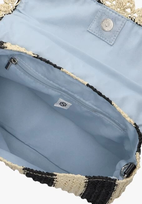 Ontdek deze handgemaakte schoudertas CAMMENA HAYLEN BAG van het merk BECKSONDERGAARD! Deze prachtige tas bestaat uit papierstro in een elegante beige tint, verfraaid met zwarte strepen voor een vleugje speelsheid. De klep is mooi afgewerkt met een gevlochten patroon en heeft aan de onderzijde een magneetsluiting. Het afneembare hengsel bestaat uit zilverkleurige schakeltjes, afgewerkt met beige papierstro. De voering van blauw textiel geeft een verfrissende twist en in het handige ritsvakje kan jij je kleine essentials goed opbergen. Laat jezelf stralen met deze modieuze musthave! De afmetingen zijn: 26 x 9 x 15 centimeter (lengte x breedte x hoogte)