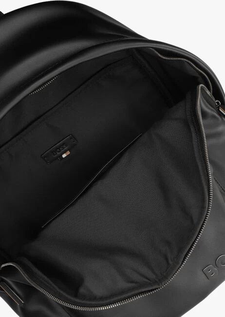 Uit de collectie van BOSS is deze moderne rugtas BYRON_BACKPACK. Deze zwarte tas van robuust, leatherlook heeft een zwarte siliconen merkembleem op de voorzijde en is afgewerkt met camelkleurige en witte kleurdetails zoals de strepen op de onderzijde van de tas, op de rubberen ritshangers en de textiele handvaten en schouderbanden. Het ruime hoofdvak beschikt over één ruim steekvak waar je gemakkelijk je laptop in kunt opbergen en een kleiner steekvakje voor je smartphone en pennen. De achterzijde van de rugtas is uitgevoerd in grove, gewatteerde mesh en biedt een prettig draagcomfort. De schouderriemen zijn verstelbaar en aan het hengsel pak je ‘m gemakkelijk mee. Afmetingen: 30 x 13 x 44 centimeter (lengte x breedte x hoogte) Inhoud: 18 liter