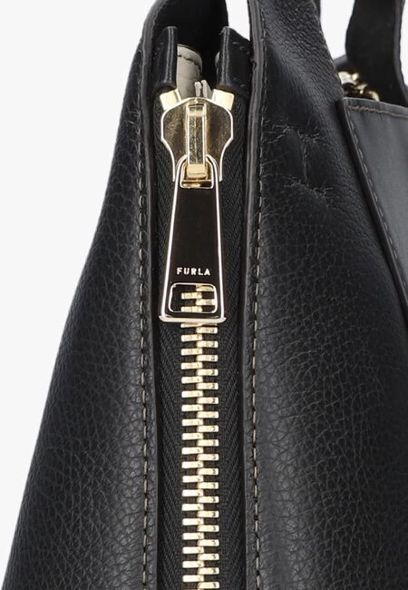 Deze zwarte handtas van het merk FURLA past bij elke outfit. De tas is gemaakt van gestructureerd en glad leer. Je kunt de tas dragen aan de handvaten, maar er zit ook een verstelbaar/afneembaar hengsel bij. De tas sluit door middel van een goudkleurig gespje. De binnenkant is gemaakt van zachte stof en heeft één ritsvak en één steekvak. Aan de zijkanten zitten twee goudkleurige ritsen, hiermee kan je de tas breder maken! De bruine stiksels op de tas zijn een leuk detail! Afmetingen: 30 x 11 x 21 cm (lengte x breedte x hoogte).