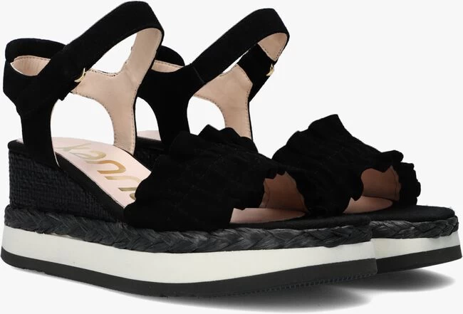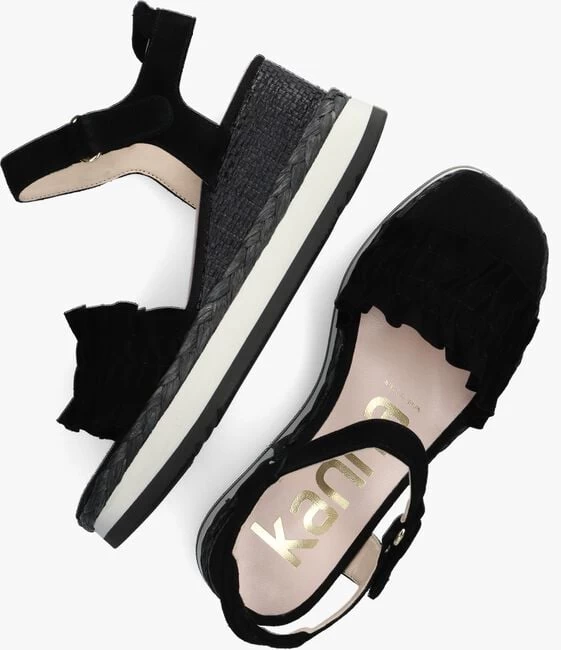 De collectie van het Spaanse schoenenmerk Kanna staat voor design, kwaliteit, comfort en originaliteit. Deze zwarte sandalen KV22151 met plateauzool en ingebouwde sleehak heeft dan ook een heel mooi ontwerp die de voeten sieren Ă©n voor een elegante finishing touch bij jouw outfit zorgen. Het suède enkelbandje met klittenbandsluiting zorgt ervoor dat de schoen goed aan je voet blijft zitten en het leer aan de binnenzijde voelt heerlijk soepel aan. Dit comfortabele model heeft een geplooide band van suède over de voorvoet voor een speelse look. Het voetbed is gemaakt van leer met onder de voorvoet een inzet van canvas textiel en de sleehak is gesierd met een vlechtwerk van stropapier. De hak heeft een hoogte van 7 centimeter met een plateau onder de voorvoet van 3,5 centimeter hoog, waardoor dit model super comfortabel loopt. De lichtgewicht zool is afgewerkt met een fijn maar gripvast profiel voor onwijs veel grip op zomerse boulevards. Ben jij er ook al verliefd op?Â