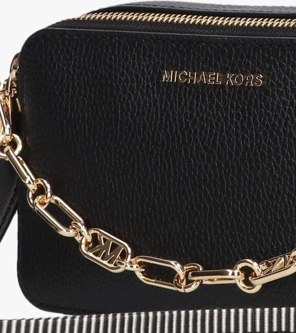 Deze schoudertas SM DBL ZP CAMRA CHN XBODY van het merk Michael Kors is onmisbaar in jouw garderobe. De buitenzijde is gemaakt van zwart structuurleer, op de voorzijde prijkt een goudkleurig merkembleem en de tas is voorzien van twee goudkleurige ritsen. De voering bestaat uit textiel en het voorste vak heeft één steekvakje en drie pashouders. Het achterste ritsvakje is voorzien van één steekvak en je kunt nog meer essentials kwijt aan het vakje op de achterzijde. De schouderband van textiel met witte accenten geeft de schoudertas een hippe look. Draag deze tas tijdens een feestje of maak je casual outfit hiermee compleet. Afmetingen: 19 x 6 x 11 centimeter (lengte x breedte x hoogte).