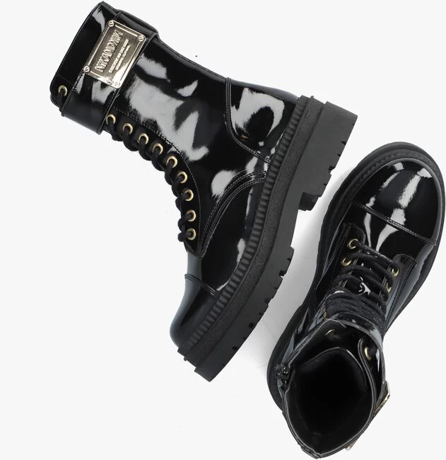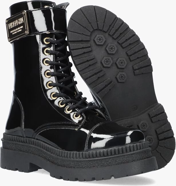 Het merk NIK & NIK is er voor de coole kids die eigenwijs en nieuwsgierig zijn en een uitgesproken smaak hebben. Deze stoere veterboot AMEE BOOTS geeft je outfit een upgrade. De buitenkant is gemaakt van zwart lak lederlook en heeft toffe details zoals de extra naad op de neus en de band aan de schacht met groot goudkleurig merkembleem. Dankzij de ritssluiting aan de binnenzijde van de schacht hoef je niet iedere keer de veter te strikken en ervaar je veel gemak tijdens het aan- en uittrekken. Het binnenwerk van zacht en gevoerd mesh textiel met een uitneembaar voetbed. De rubberen zool ziet er super stoer uit met het ribbelrand en de loopzool met grof profiel geeft je stevige grip.Â