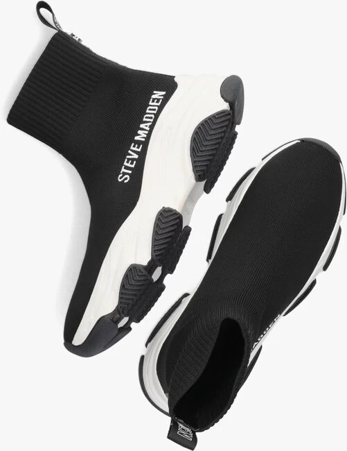 Hoe gaaf zijn deze JPRODIGY ‘knitted sok’ sneakers van het vooruitstrevende merk STEVE MADDEN! Dit zwarte item is gemaakt van gebreid textiel dat heerlijk aansluit aan je voeten. Het binnenwerk is uitgevoerd in zacht textiel met een comfortabel voetbed van foam, waardoor jij heel de dag op deze schoen kunt lopen! De witte, chunky zool met golvende lijnen en zwart accent geeft de sneaker die extra finishing touch. Een leuk detail is ook het geborduurde logo op de zijkant. Trek hem snel aan en uit met de handige aantreklus met merkopdrukken en deze is afgewerkt met een zilverkleurige stud. Combineer deze sneakers met al je favoriete outfits en je bent ready to go!