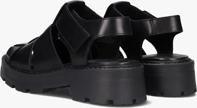 Het Zweedse merk VAGABOND SHOEMAKERS is een diepgeworteld merk met veel passie en liefde voor het maken van schoenen. Door het vakmanschap, de creativiteit en het perfectionisme waarmee de schoenen worden gemaakt weten ze je keer op keer te verbazen met hoogwaardig mooi afgewerkte en vooral trendy schoenen. Deze stoere, zwarte dad sandal COSMO 2.0 SANDAL heeft een gevlochten bovenwerk van gladleer met een handige klittenbandsluiting voor een extra ruime instap. De banden en het voetbed zijn gevoerd met zwart leer en het dempende voetbed is van chroomvrij leer. Dit model heeft een ronde neus en een merkopdruk op het voetbed. Opvallend is de grove rubberen zool van bijna 3 centimeter dik onder de voorvoet en de stevige blokhak met een hakhoogte van ruim 4 centimeter. Dankzij het grove profiel in de loopzool heeft de sandaal niet alleen een hele stoere uitstraling, maar zorgt hij ook voor een superstevige grip. Perfect voor lange wandelingen door de stad!