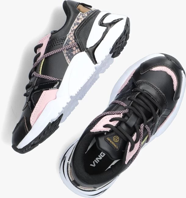 Kan jij deze stoere lage sneaker ODILIA van VINGINO wel waarderen? Ze voldoen helemaal aan de laatste trends en zien er niet alleen heel stoer uit maar zijn ook nog eens heel comfy. Het bovenwerk is gemaakt van zwart leer met een suèdelook inzet stuk bij de hiel met reptielenprint, accenten van roze leer, een textiel merklabel op de zijkant en een rubber merkembleem op de tong. Opvallende details zijn de twee kleurige veters op de zijkant van de schoen die als veterlus dient en de lichtgewicht chunky zool met een grafische zwarte lijn bij de hiel. De gevoerde enkelkraag en tong van mesh textiel in combinatie met het dempende en uitneembare voetbed biedt veel comfort en steun aan nog ontwikkelende voeten. Dankzij het grove profiel onder de loopzool ervaar je veel grip en stabiliteit bij al je avonturen buiten.
